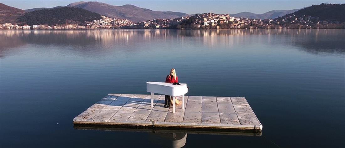Στη συνέχεια, ξεκίνησε να παίζει τα αγαπημένα της κομμάτια, δημιουργώντας μια μαγευτική ατμόσφαιρα στο όμορφο φυσικό τοπίο της Καστοριάς.