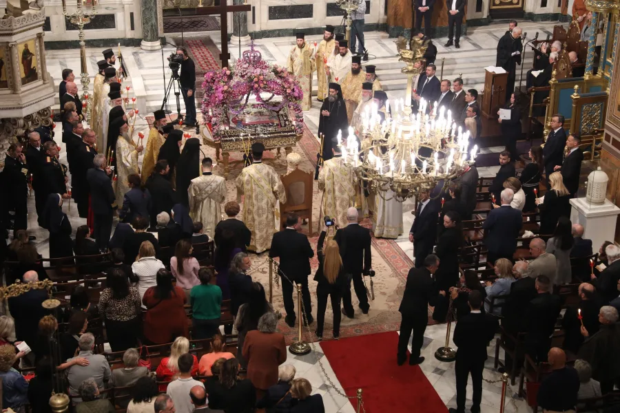 Η κορύφωση της Ακολουθίας ήρθε με την περιφορά του Επιταφίου στους δρόμους του κέντρου της Αθήνας, υπό τους ήχους των εγκωμίων, προσφέροντας στους πιστούς μια κατανυκτική εμπειρία. Στο μήνυμά του κατά την Περιφορά του Επιταφίου, ο Αρχιεπίσκοπος Ιερώνυμος ευχήθηκε καλή φώτιση σε όλους.