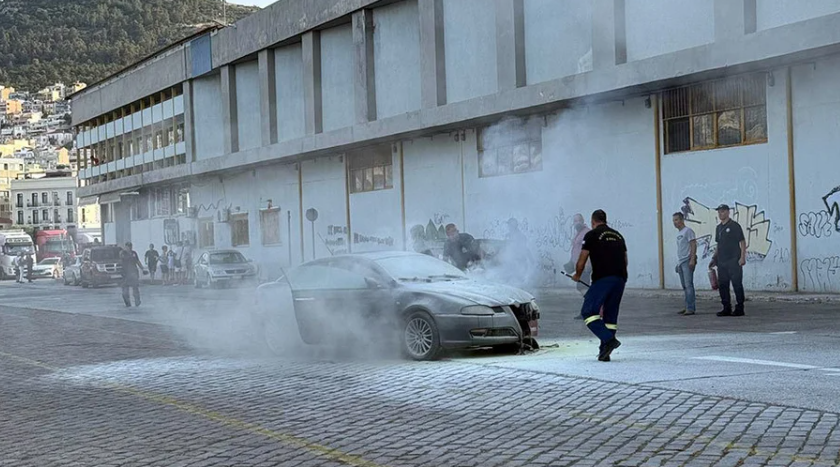Αμέσως οι Λιμενικοί υπάλληλοι απομάκρυναν τα υπόλοιπα αυτοκίνητα ενώ με πυροσβεστήρες κατάφεραν να περιορίσουν την φωτιά.