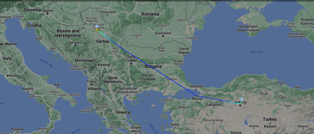 Την Παρασκευή πάλι το flightradar24.com κατέγραψε το Antonov να έχει απογειωθεί από το Βελιγράδι με προορισμό την Άγκυρα.