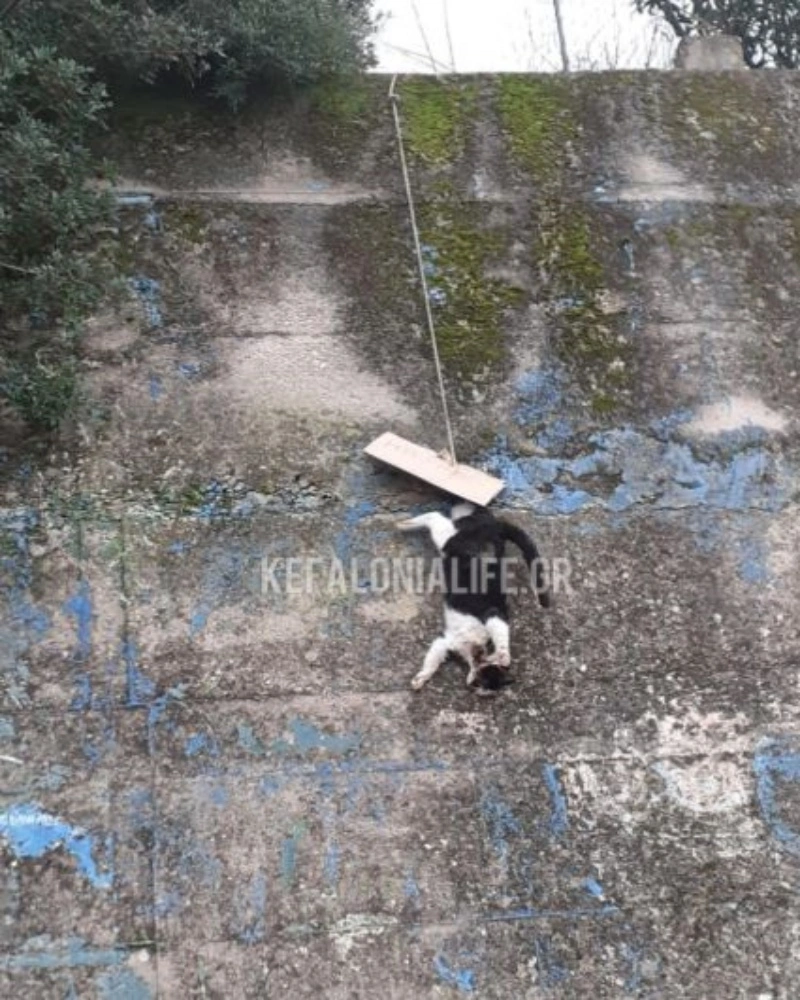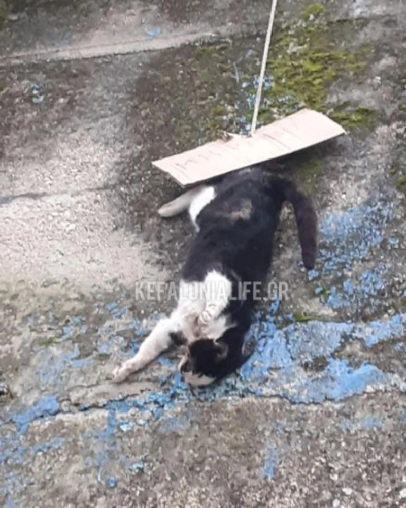 Σύμφωνα με το kefalonialife.gr, άγνωστοι σκότωσαν μία γάτα και την κρέμασαν στη συνέχεια από ένα σχοινί.