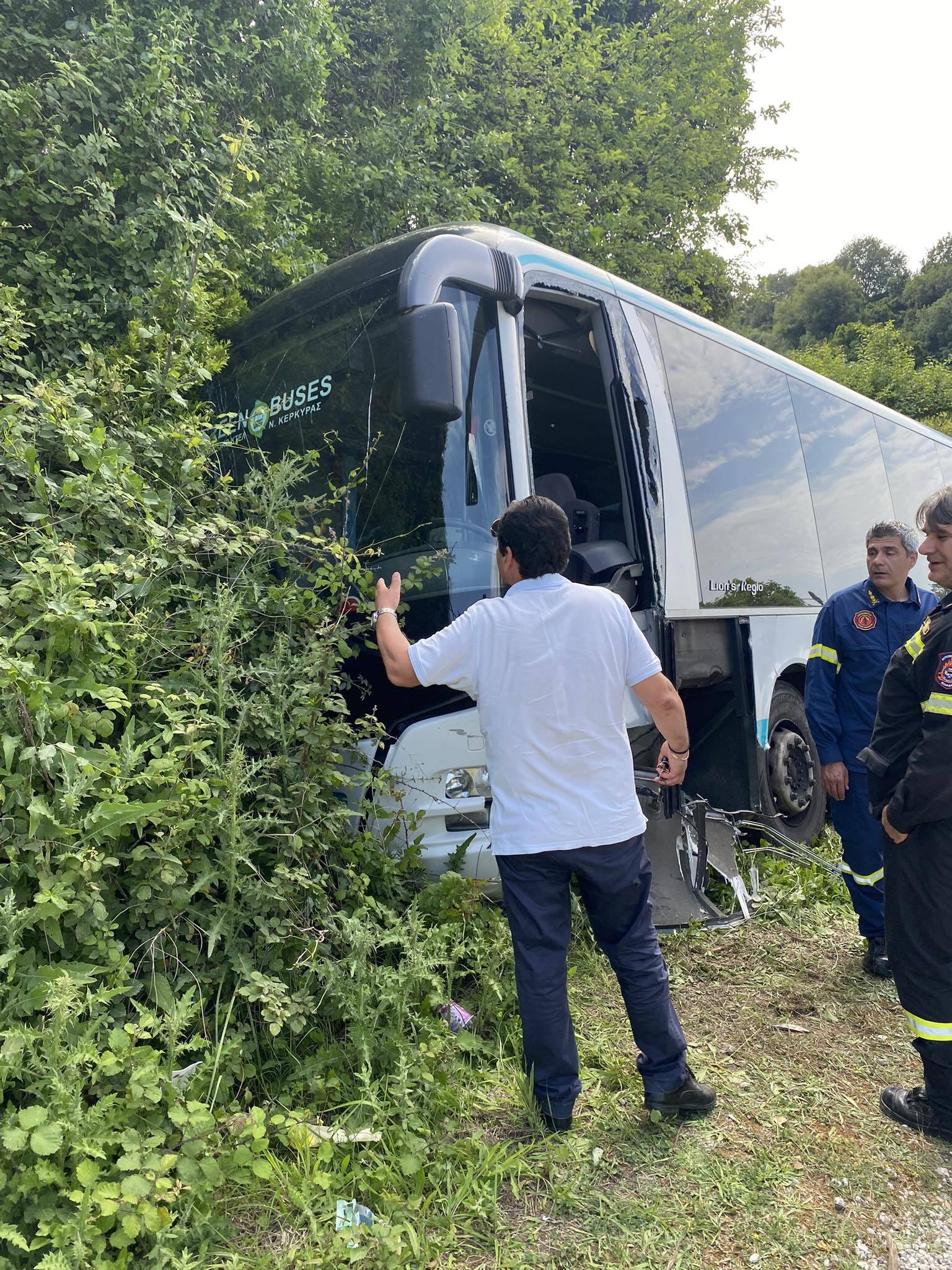 Σημειώνεται ότι οι επιβαίνοντες στο λεωφορείο απεγκλωβίστηκαν με συνδρομή της Πυροσβεστικής. Όπως φαίνεται και στις εικόνες που εξασφάλισε το corfutvnews.gr τοποθετήθηκε σκάλα προκειμένου να κατέβουν με ασφάλεια από το ΚΤΕΛ επιβάτες και τραυματίες.