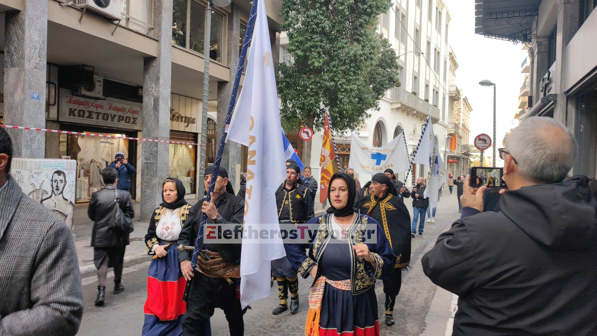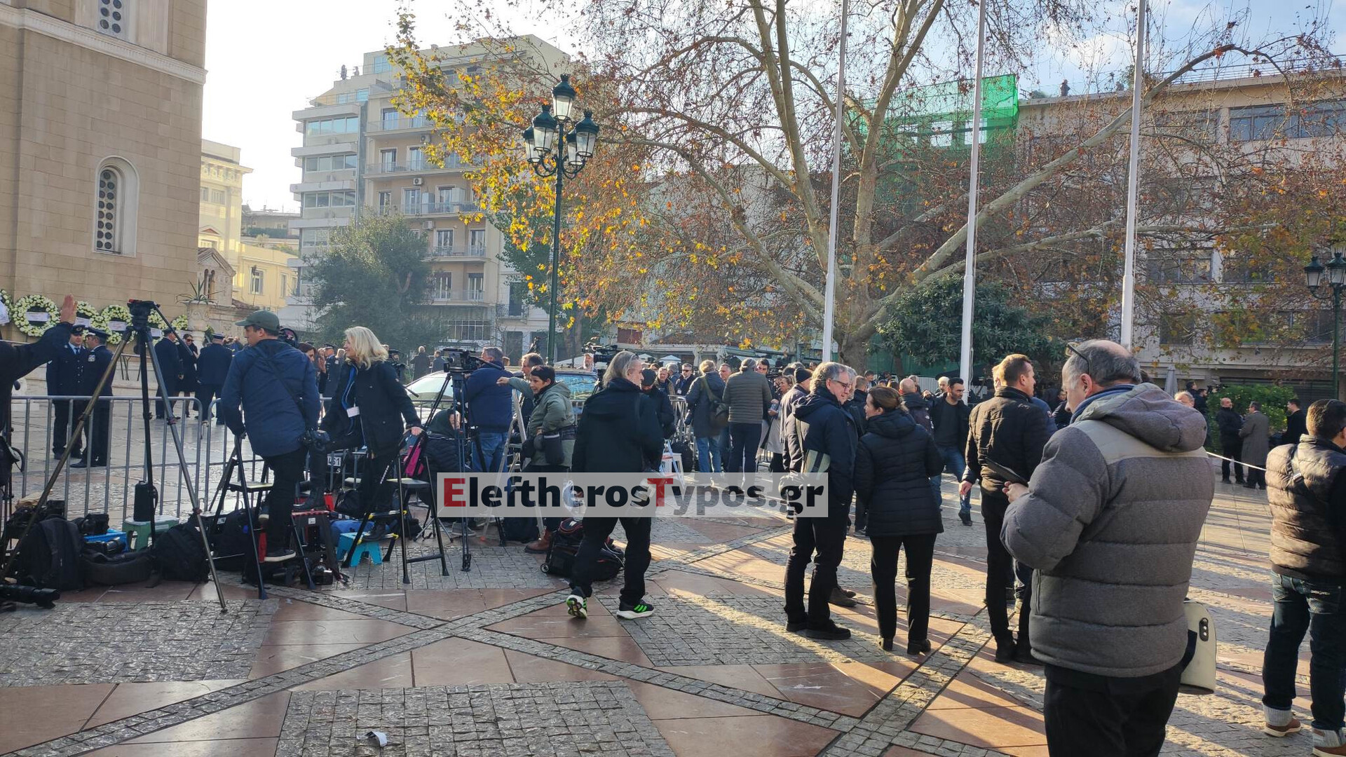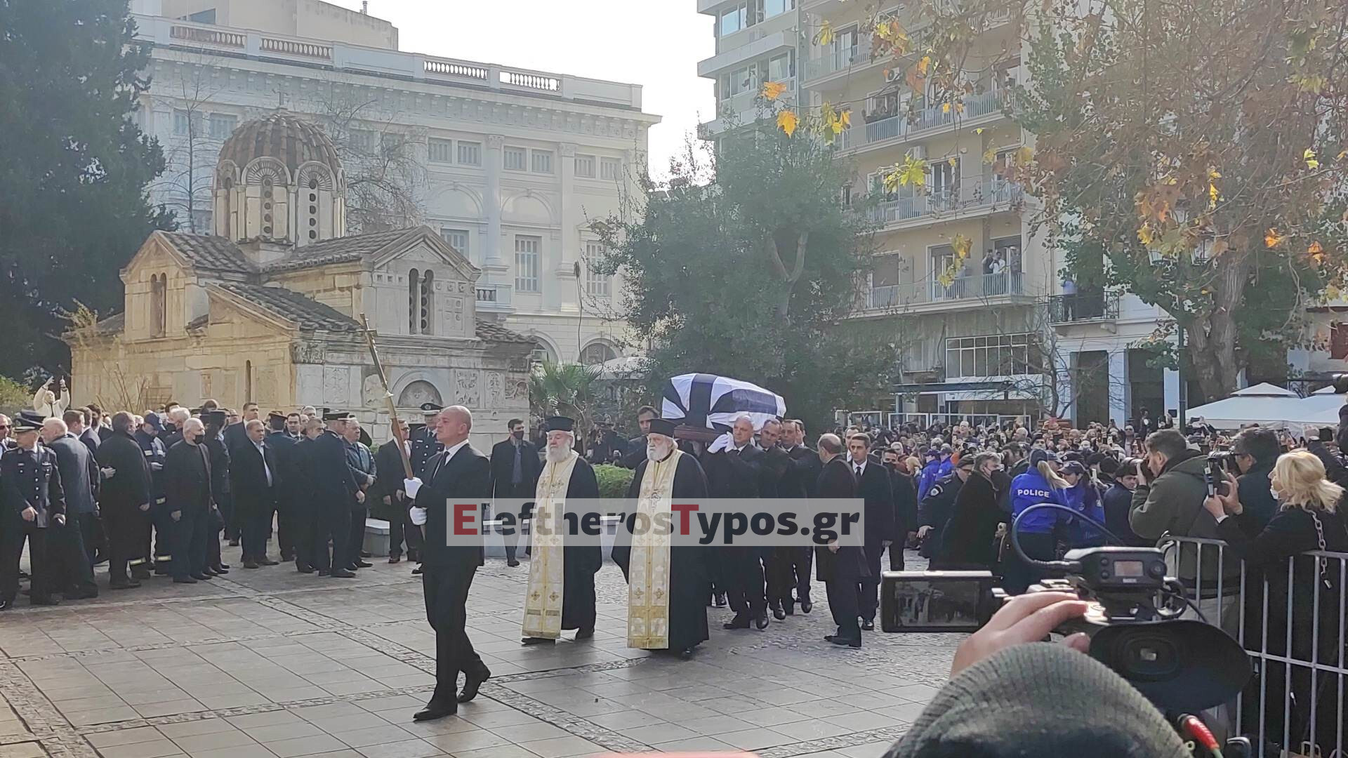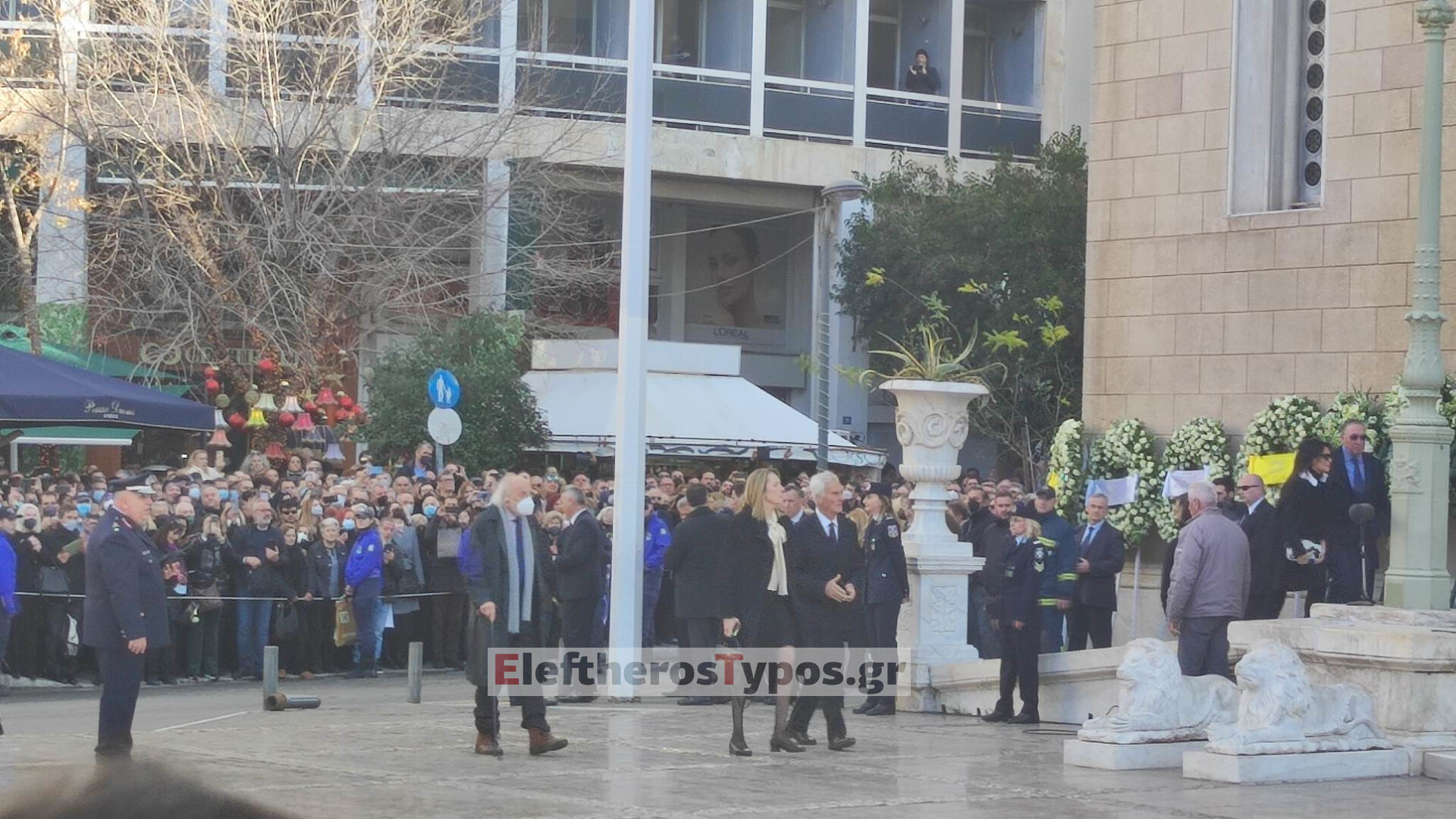 Εντυπωσιακή η εικόνα της πομπής από τη Μητρόπολη μετά την ολοκλήρωση της εξοδίου ακολουθίας για τον τέως βασιλιά Κωνσταντίνο.
