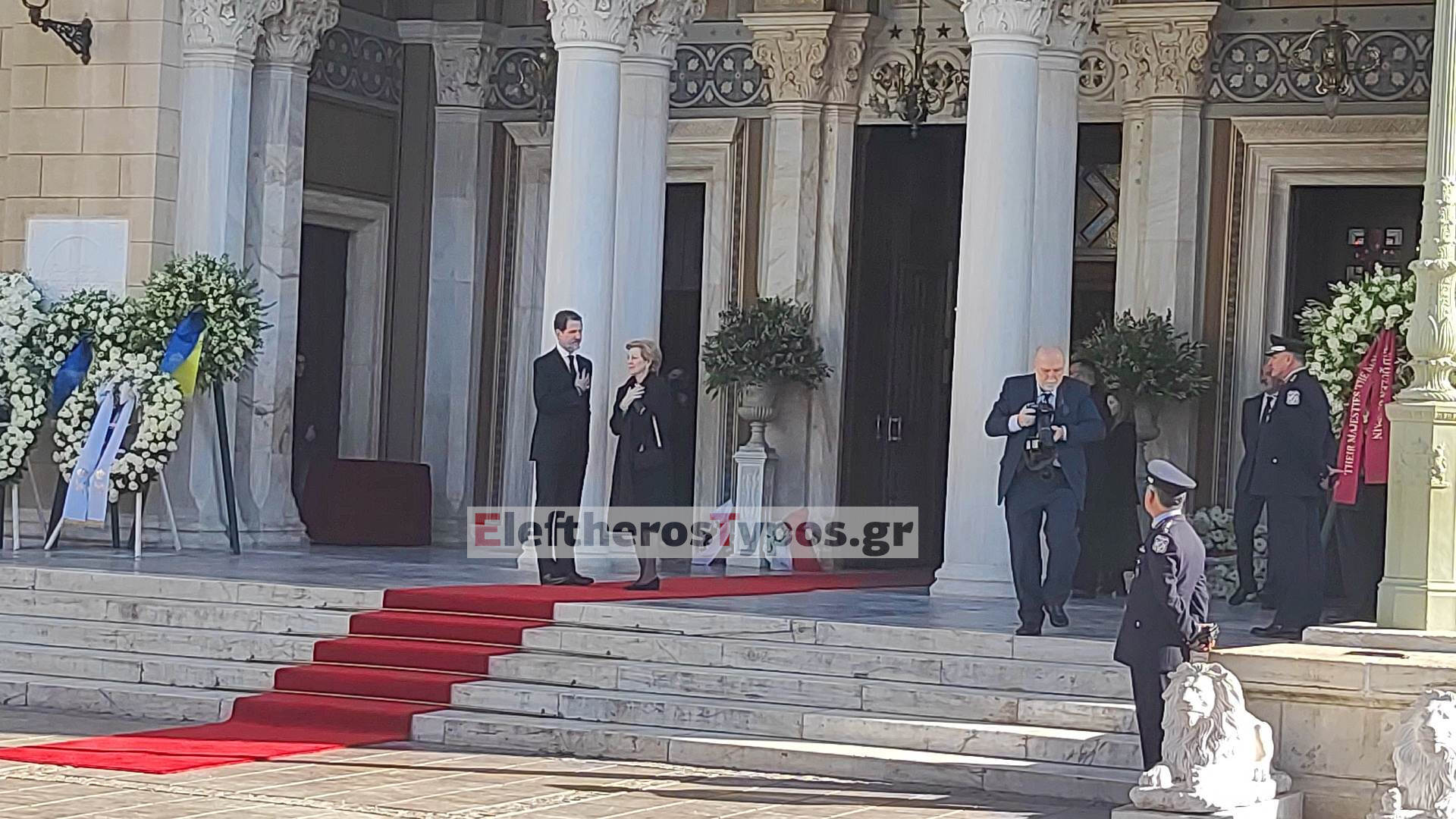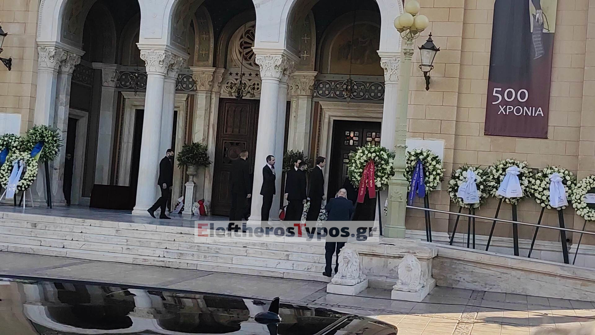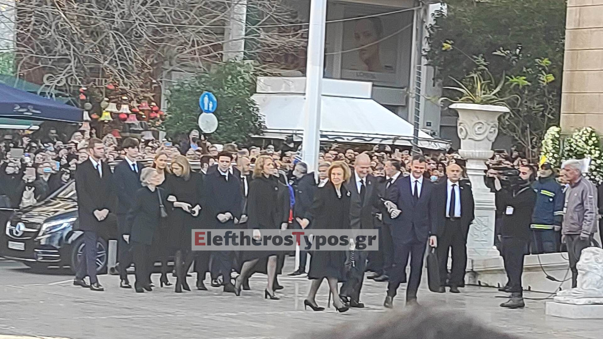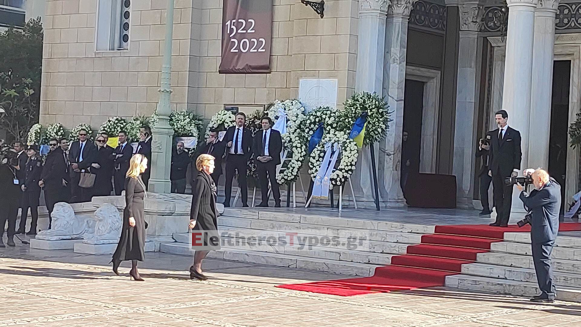Στη Μητρόπολη έφτασαν οι αδερφές του Τέως Βασιλιά Κωνσταντίνου, η επίτιμη βασίλισσα της Ισπανίας Σοφία και η Ειρήνη, καθώς και ο επίτιμος Βασιλιάς Χουάν Κάρλος.