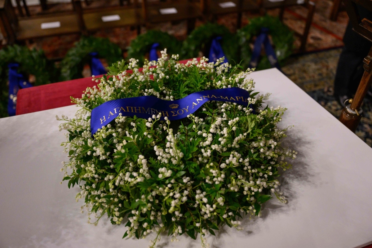 Η Άννα Μαρία παρήγγειλε ένα στεφάνι με μιγκέ, μικρούς λευκούς κρίνους από τους οποίους, όπως ειπώθηκε στην εκπομπή «Super Κατερίνα», ήταν φτιαγμένη και η ανθοδέσμη του γάμου τους. Το στεφάνι γράφει «η αγαπημένη σου Άννα – Μαρία».