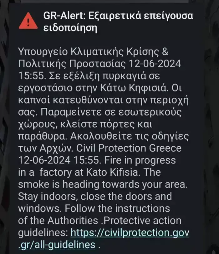 Κηφισιά: Ήχησε το 112 – «Κλείστε πόρτες και παράθυρα»