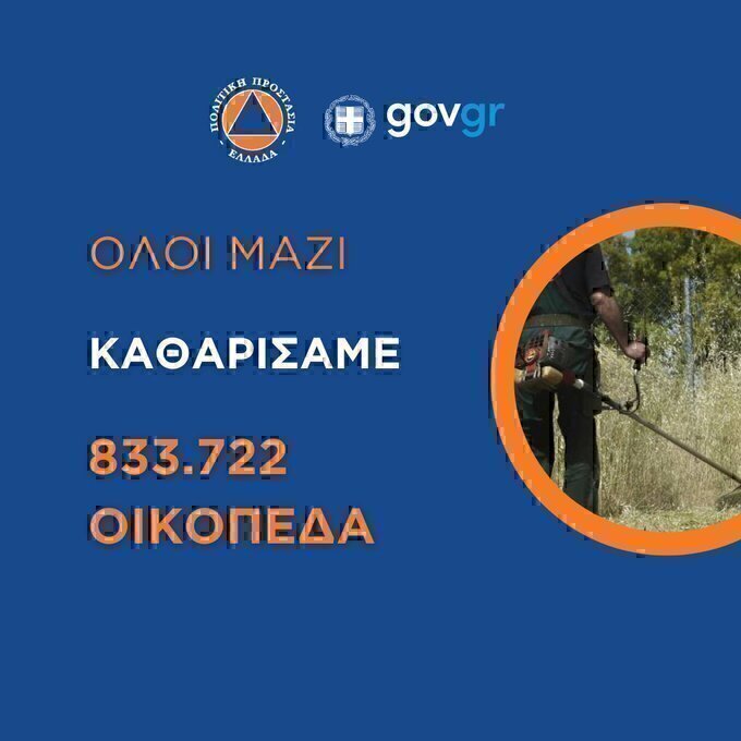 Στη δύσκολη μάχη αυτής της αντιπυρικής περιόδου, 833.722 πολίτες με αίσθημα κοινωνικής ευθύνης, καθάρισαν τα οικόπεδα τους, προσφέροντας τεράστια βοήθεια στο πεδίο της πρόληψης, προστατεύοντας ζωές και περιουσίες. Ένα μεγάλο ευχαριστώ σε όλες και όλους, στην καθεμία και στον… pic.twitter.com/ENpAjM7W2b