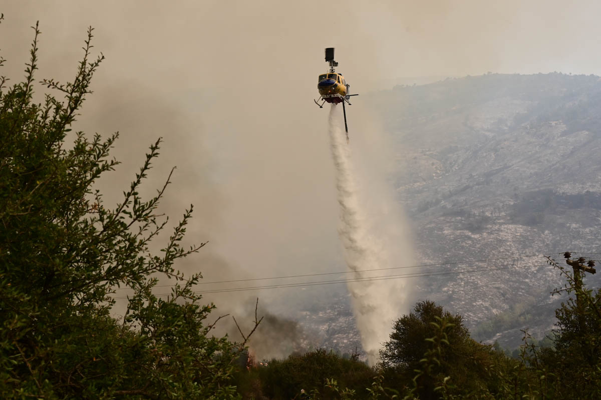 Με το πρώτο φως της ημέρας ρίψεις νερού πραγματοποιούν τα εναέρια μέσα, ενώ ισχυρές παραμένουν και οι επίγειες δυνάμεις, προκειμένου να ανακόψουν τις πολλές ενεργές διάσπαρτες εστίες.