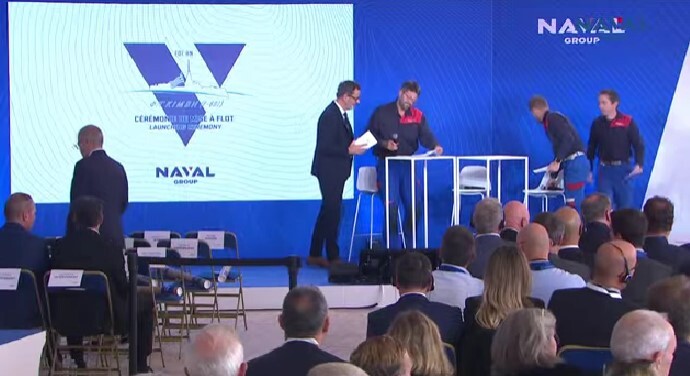 «Βρισκόμαστε σήμερα στη Λοριάν για να γιορτάσουμε την καθέλκυση της πρώτης ελληνικής φρεγάτας Κίμων» είπε ο Πρόεδρος και Διευθύνων Σύμβουλος της Naval Group σε άπταιστα ελληνικά.