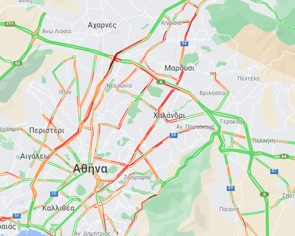 Την ίδια ώρα προβλήματα υπάρχουν και στην Κηφισίας τόσο στην άνοδο όσο και στην κάθοδο σε πολλά σημεία.
