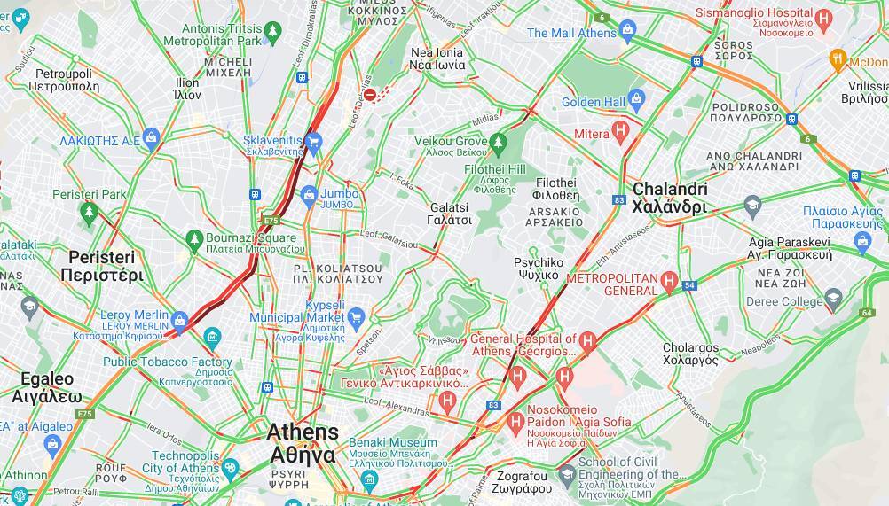 - Στην λεωφόρο Κηφισίας στο ύψος του γηροκομείου