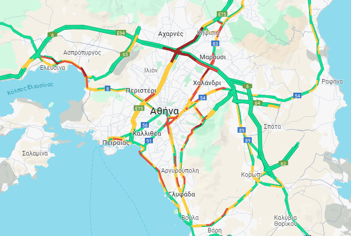 Την ίδια ώρα με χαμηλές ταχύτητες κινούνται οι οδηγοί και σε κεντρικούς δρόμους της Αθήνας όπως Βασ. Κωνσταντίνου, Πανεπιστημίου, Σταδίου, Βασ. Αμαλίας, Αλεξάνδρας, στη Μεσογείων και στην άνοδο της Λ. Συγγρού.