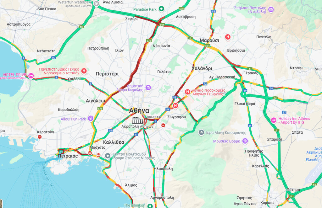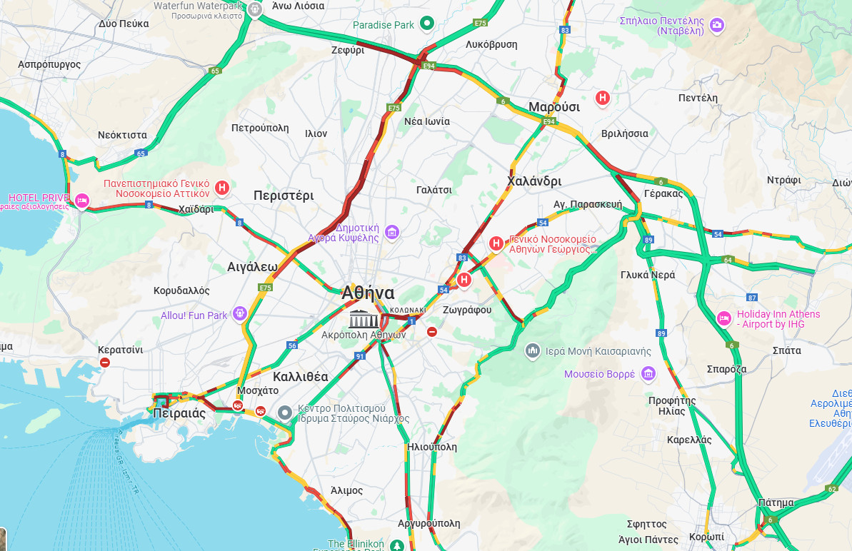 Οι οδηγοί που σκοπεύουν να περάσουν από Κηφισό, Αττική Οδό, Κηφισίας και Μεσογείων θα χρειαστούν αρκετή υπομονή. Όσο περνά η ώρα, η κατάσταση στους δρόμους θα γίνεται ολοένα και πιο δύσκολη.