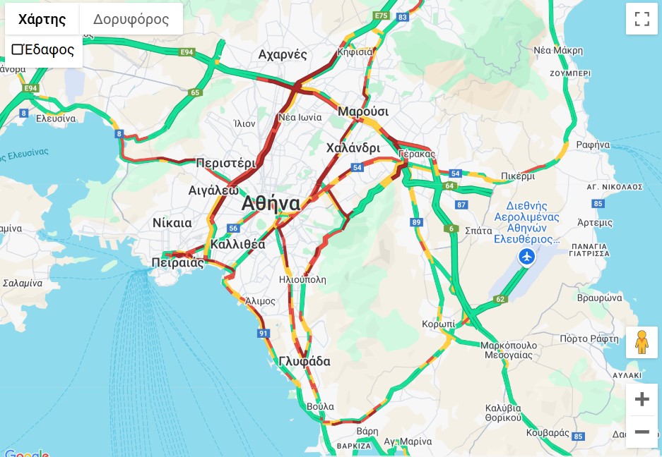Αυτή την ώρα το μεγαλύτερο πρόβλημα σημειώνεται στον Κηφισό, όπου τα οχήματα είναι στο «σταμάτα-ξεκίνα», ενώ ίδια κατάσταση λαμβάνει χώρα και στην άνοδο από την Νίκαια έως τη Λυκόβρυση.