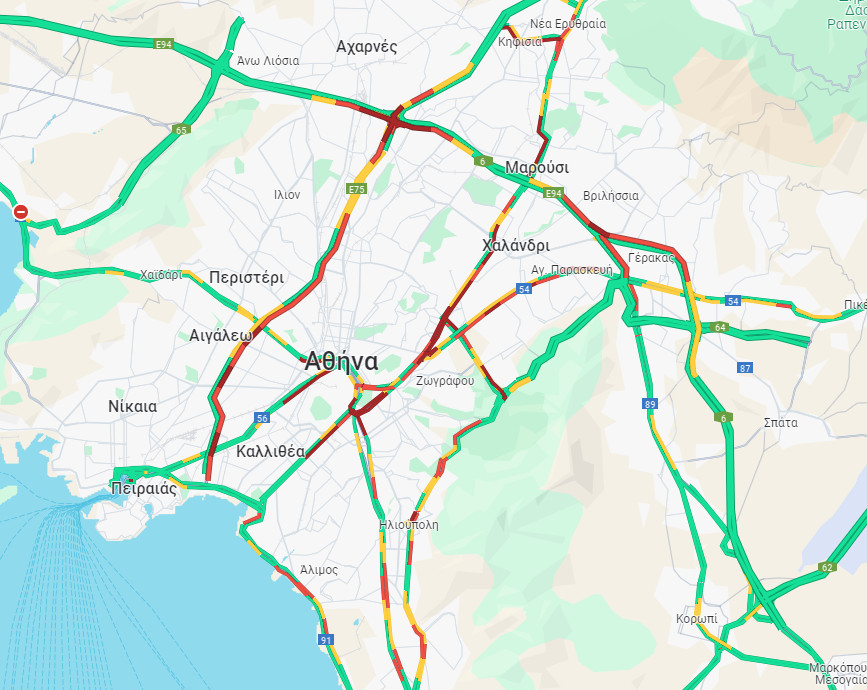 Ειδικότερα κίνηση θα συναντήσουν οι οδηγοί στην άνοδο του Κηφισού οπού τα προβλήματα ξεκινούν στην άνοδο από τον Πειραιά και φτάνουν μέχρι και τη Νέα Χλακιδόνα. Στην κάθοδο του Κηφισού τα πράγματα είναι καλύτερα.