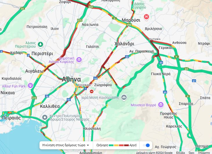 Παρακάτω ο χάρτης της Google από την κίνηση στους δρόμους: