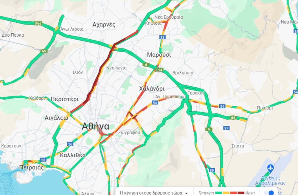 Στο κόκκινο είναι η κίνηση αυτή την ώρα και στο κέντρο της Αθήνας, με τα αυτοκίνητα να κινούνται με χαμηλές ταχύτητες επί της λεωφόρου Κωνσταντίνου στο ρεύμα ανόδου, πριν το ύψος του Χίλτον. Καθυστερήσεις υπάρχουν και στη λεωφόρο Βασιλίσσης Σοφίας και στα δύο ρεύματα, ενώ κυκλοφοριακή συμφόρηση καταγράφεται σε Σταδίου και Ακαδημίας.