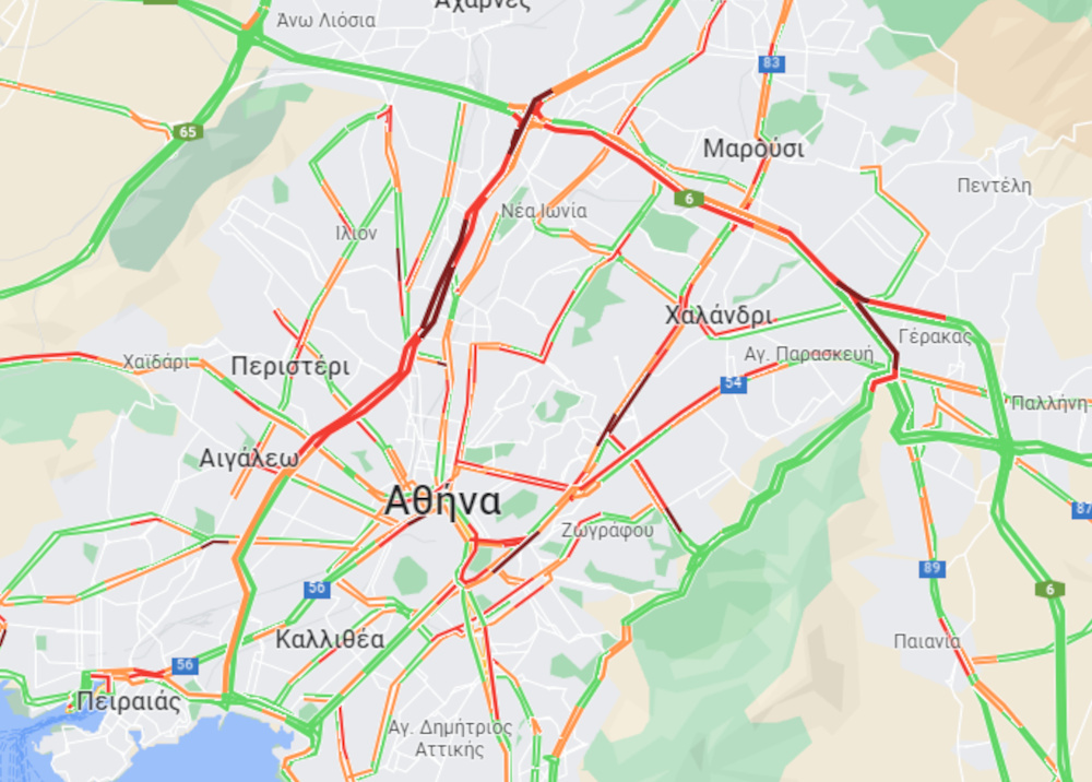 Καθυστερήσεις καταγράφονται στο ρεύμα προς Ελευσίνα 10΄-15΄από κόμβο Πλακεντίας έως κόμβο Κηφισίας. Καθυστερήσεις υπάρχουν στην Περιφερειακή Υμηττού στο ρεύμα προς Ελευσίνα 15′-20′ από κόμβο Πλακεντίας έως κόμβο Κηφισίας.