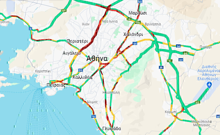 Ειδικότερα, πολύ αυξημένη είναι η κίνηση στον Κηφισό στην κάθοδο από την Μεταμόρφωση μέχρι το Ρέντη και στην άνοδο από τα ΚΤΕΛ μέχρι τη Νέα Φιλαδέλφεια.