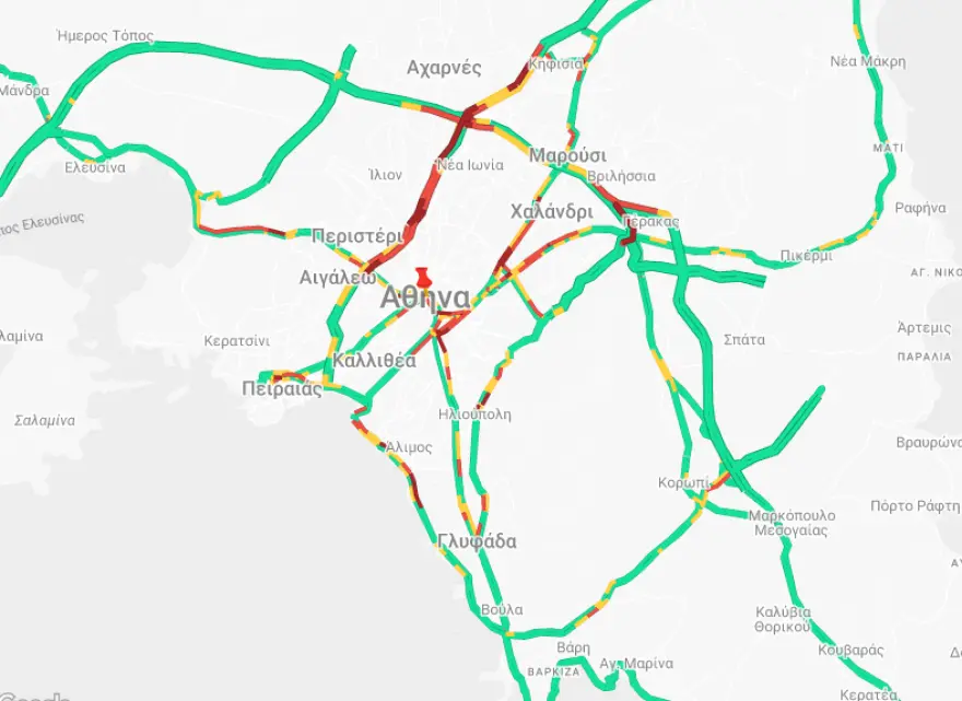 Σύμφωνα με τον χάρτη κυκλοφορίας της Τροχαίας, μποτιλιάρισμα τώρα καταγράφεται στους εξής δρόμους: