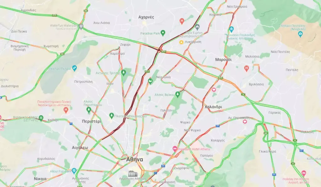Κι αυτό γιατί η ουρά των αυτοκινήτων φτάνει μέχρι το ύψος της Κηφισιάς, σχηματίζοντας ουρά 13 χιλιομέτρων. Κίνηση όπως κάθε μέρα υπάρχει και στην άνοδο του Κηφισού, με το μεγαλύτερο πρόβλημα να υπάρχει από το ύψος της Λεωφόρου Αθηνών μέχρι τη Νέα Φιλαδέλφεια.