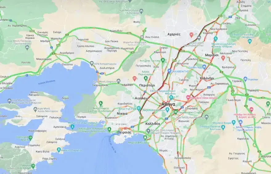 - Μποτιλιάρισμα επικρατεί και στα δύο ρεύματα της Πειραιώς (στην άνοδο από τον ύψος της Ιεράς Οδού μέχρι την Ομόνοια και στην κάθοδο από την Δεληγιώργη έως το Γκάζι).
