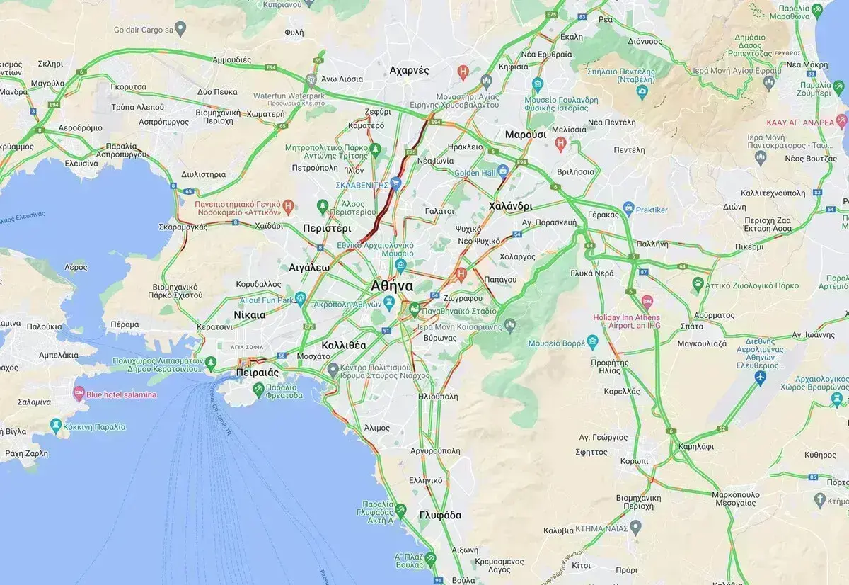 Σε αρκετά σημεία είναι αυξημένη η κίνηση στους δρόμους με τα περισσότερα προβλήματα να εντοπίζονται στην κάθοδο του Κηφισού λόγω τροχαίου που σημειώθηκε στο ύψος της Ιεράς Οδού.