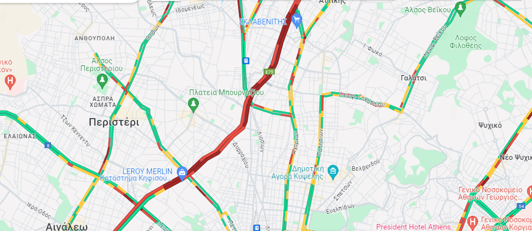 Μεγάλες καθυστέρησες σε κεντρικούς δρόμους του λεκανοπεδίου και συγκεκριμένα: