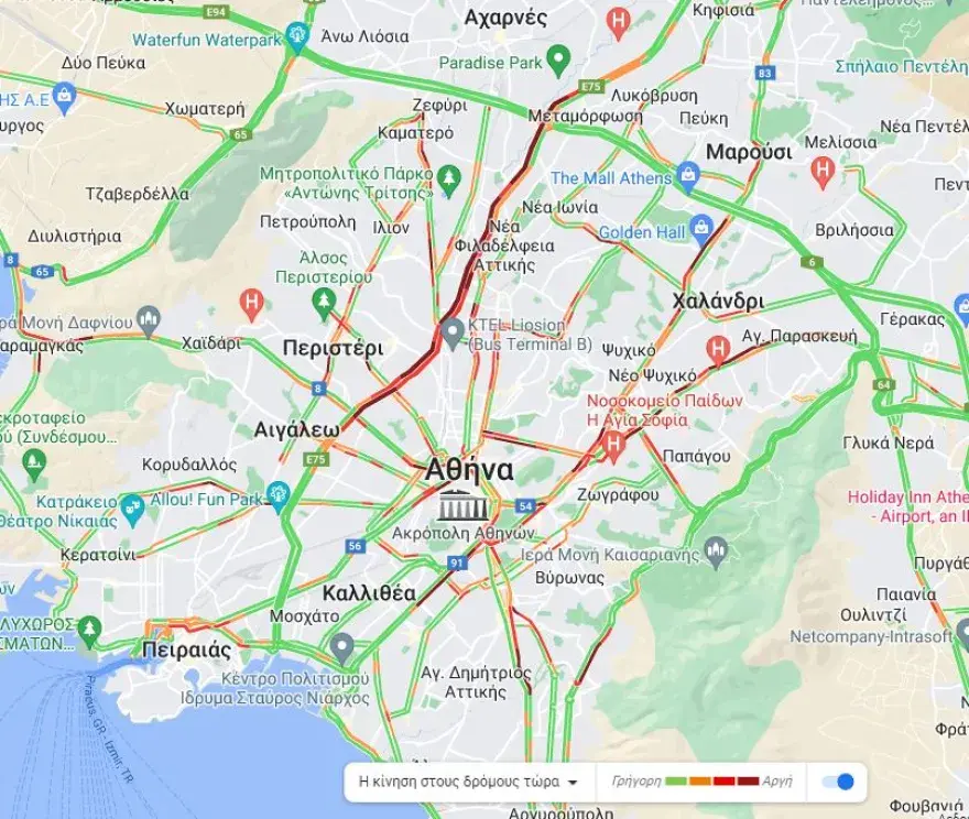 Σύμφωνα με την τροχαία Αττικής, η κίνηση είναι αυτή την ώρα αυξημένη στα εξής σημεία: