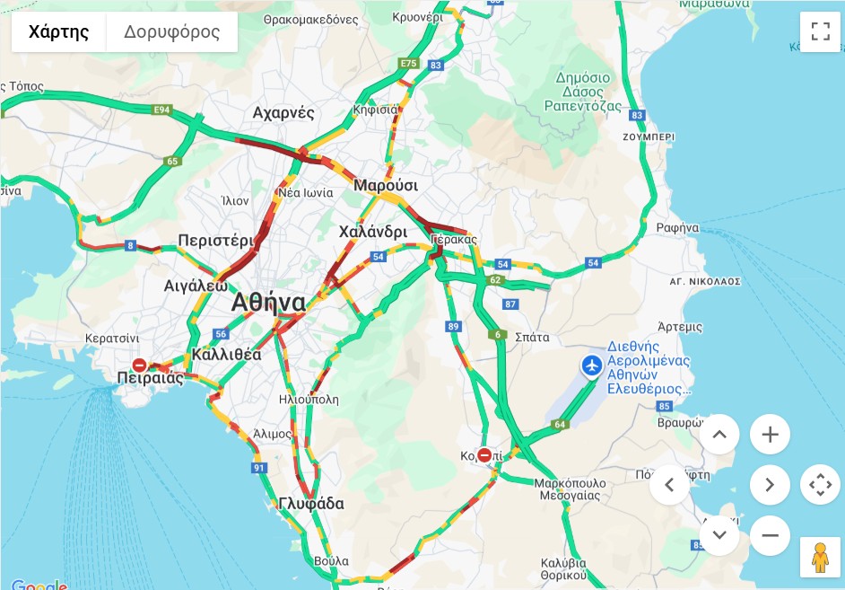 Δείτε ΕΔΩ την κίνηση στους δρόμους της Αττικής