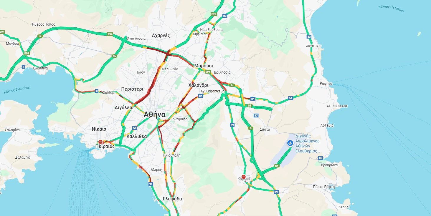 Προβλήματα κίνησης εντοπίζονται επίσης στη Λεωφόρο Αθηνών, στην Κατεχάκη και στους δρόμους γύρω από το κέντρο της Αθήνας, ενώ αντίστοιχη είναι η κατάσταση στους δρόμους κοντά στο λιμάνι του Πειραιά.