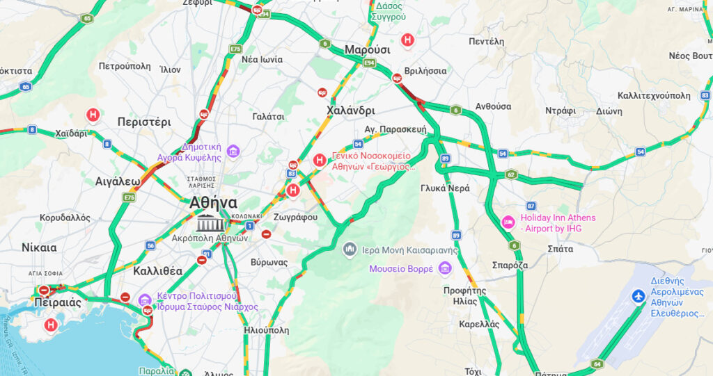 Καθυστερήσεις καταγράφονται και στη λεωφόρο Αθηνών, από το Χαϊδάρι έως τον Σκαραμαγκά.