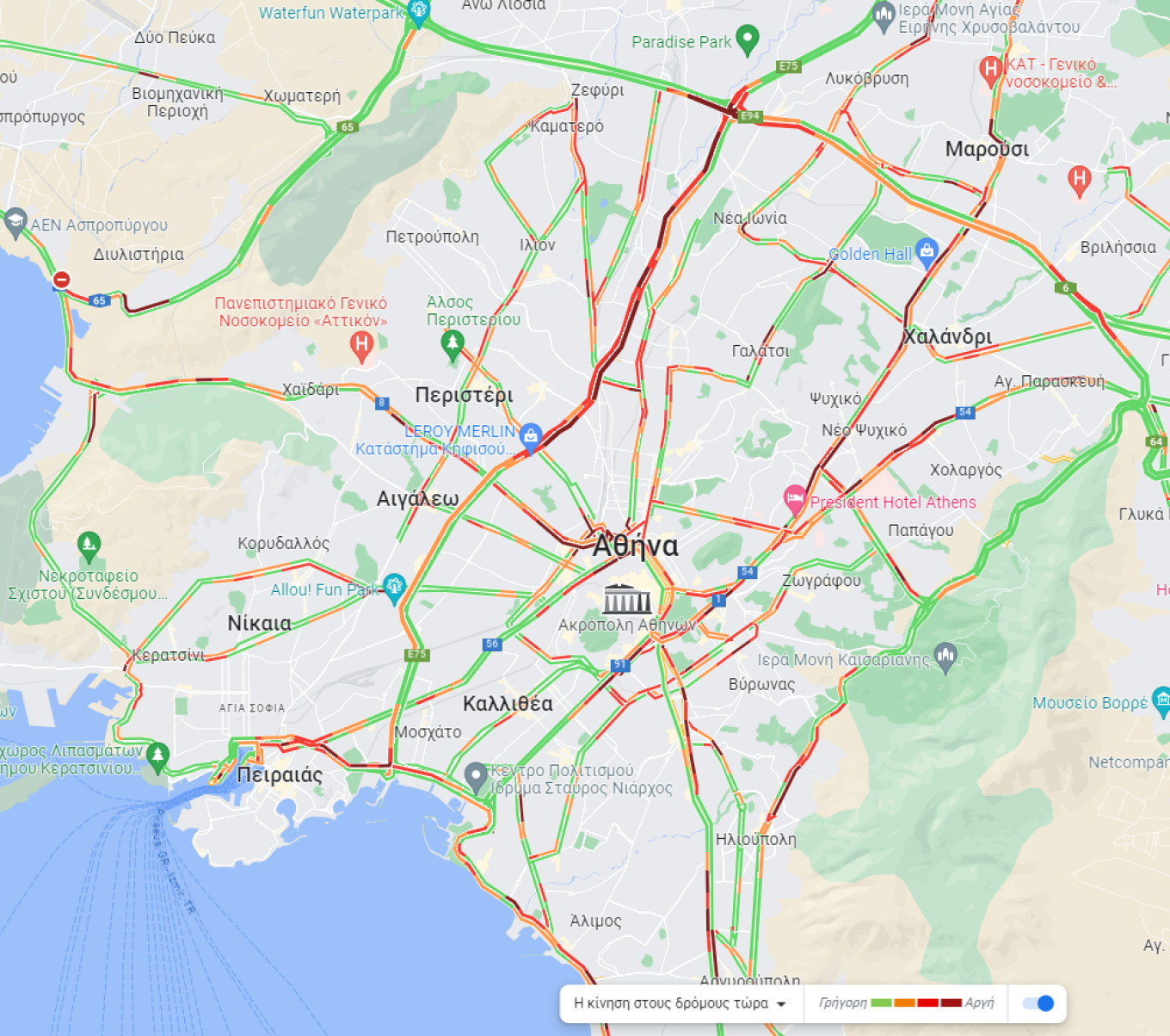 Τα βασικά προβλήματα για τους οδηγούς παρατηρούνται στον Κηφισό στην κάθοδο προς Πειραιά από το ύψος του Περιστερίου. Μποτιλιάρισμα καταγράφεται και στο κέντρο της Αθήνας, με τα οχήματα να κινούνται με χαμηλές ταχύτητες σε Μεσογείων Κατεχάκη αλλά και στα δυο ρεύματα επί της λεωφόρου Κηφισίας.