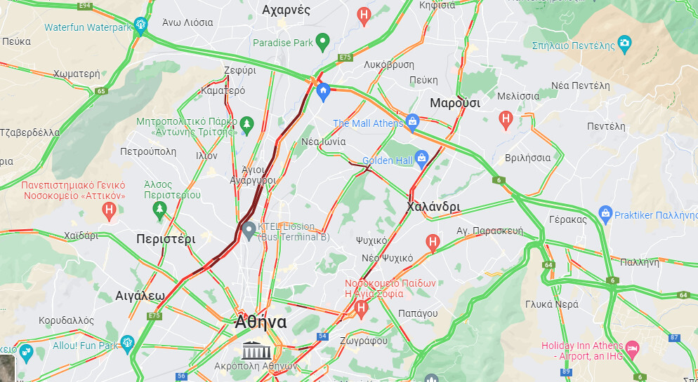 Αρκετή κίνηση καταγράφεται τώρα τμηματικά και στην κάθοδο της Λ.Κηφισίας αλλά και στην Αθηνών-Λαμίας(κόμβος Καλυφτάκη έως Λ. Αθηνών – είσοδος).