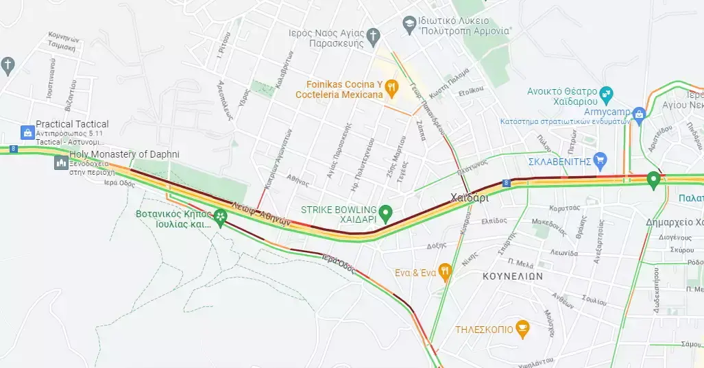 Το τροχαίο σημειώθηκε κοντά στη συμβολή της Λεωφόρου Αθηνών με την οδό Μυστρά στο ρεύμα προς Κόρινθο. Στο σημείο υπάρχει αυξημένη κίνηση, ενώ μποτιλιάρισμα παρατηρείται και στην Ιερά Οδό.