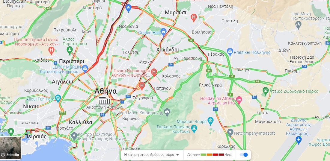 Ωστόσο, λίγο μετά τις 9 η κίνηση ξεκινά από την Κηφισιά και φτάνει μέχρι το Μοσχάτο στο ρεύμα προς Πειραιά.