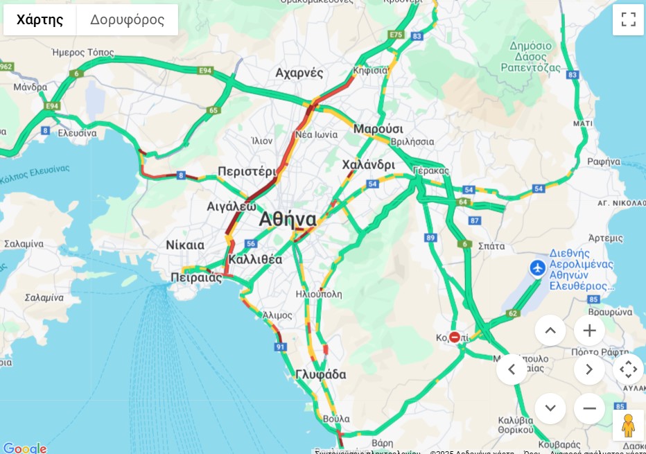Δείτε παρακάτω την κίνηση στην Αθήνα από τον χάρτη της Google: