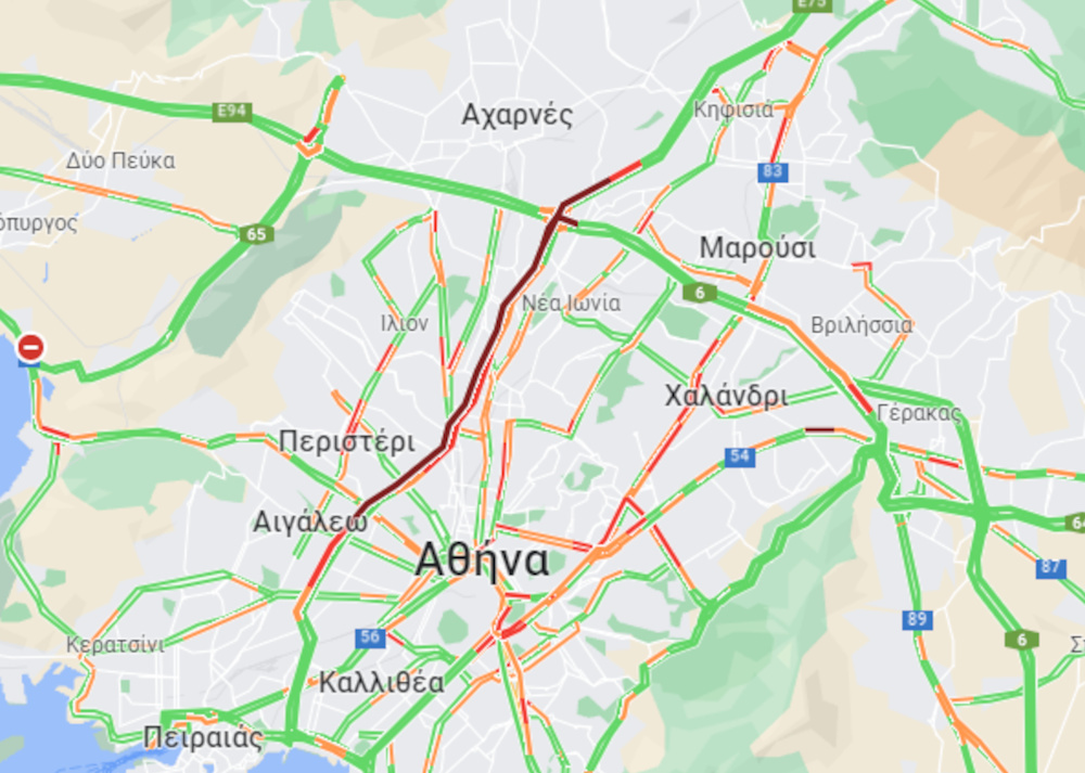 Ειδικότερα, σύμφωνα με την Τροχαία, στην κάθοδο του Κηφισού από το ύψος της Αττικής Οδού και σε μήκος 9,5 χλμ έως το ύψος της Πέτρου Ράλλη λόγω σύγκρουσης δύο ΙΧ αυτοκινήτων και μιας μοτοσυκλέτας στην αριστερή λωρίδα κυκλοφορίας. Στην άνοδο της Κηφισού από Λένορμαν προς Ν. Φιλαδέλφεια.