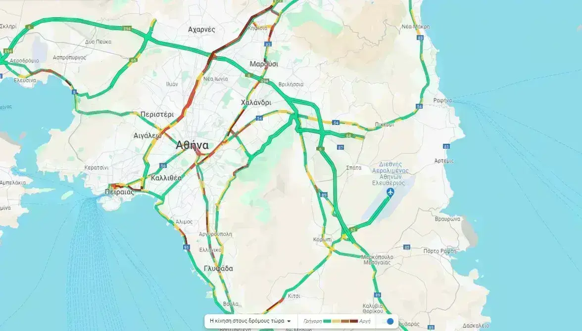 Το απόλυτο χάος επικρατεί στην Εθνική Οδό Αθηνών-Λαμίας, στο ρεύμα προς Πειραιά. Συγκεκριμένα οι οδηγοί αδυνατούν να διανύσουν πολλά μέτρα από το Δημοτικό Στάδιο Νέας Ερυθραίας μέχρι και την έξοδο στην Αναγεννήσεως. Η κίνηση παραμένει στο κόκκινο στο ρεύμα της καθόδου από το Μοσχάτο μέχρι και τη Μικράς Ασίας ενώ πολύ έντονα προβλήματα παρατηρούνται και περιμετρικά του λιμανιού του Πειραιά. Στο κόκκινο είναι η Λεωφόρος Ποσειδώνος στο ρεύμα προς τη Γλυφάδα λόγω της καραμπόλας των 7 οχημάτων, όπως μπορείτε να δείτε και εσείς στον χάρτη που ακολουθεί.