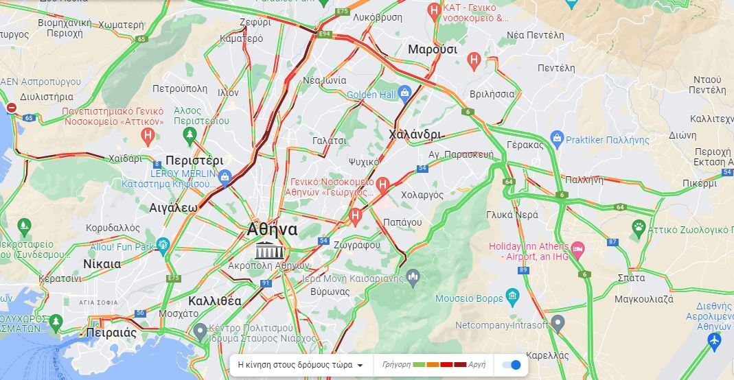 Το αδιαχώρητο επικρατεί και στην Κηφισίας καθώς το ρεύμα προς το κέντρο είναι κυριολεκτικά στα κόκκινα. Κατεχάκη και περιφερειακός Υμηττού στενάζουν ενώ την ίδια ώρα εντοπίζονται πολύ σημαντικά προβλήματα και σε μικρότερες οδούς περιμετρικά του Συντάγματος.