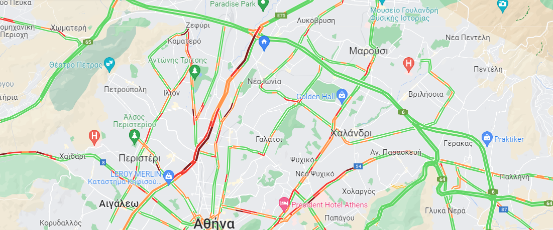 Το μεγαλύτερο πρόβλημα εντοπίζεται αυτή την ώρα στην κάθοδο και στην άνοδο της Κηφισού.
