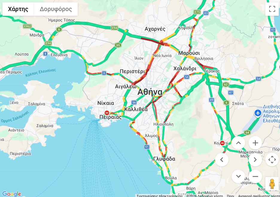 Δείτε ΕΔΩ την κίνηση στους δρόμους της Αττικής