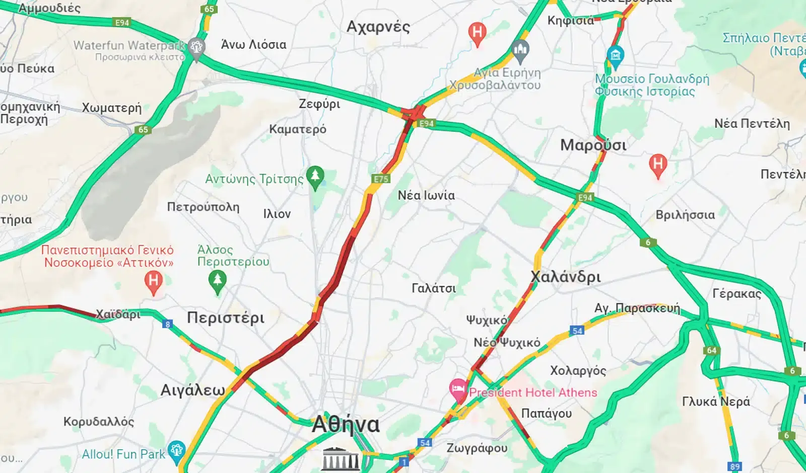 Τα μεγαλύτερα προβλήματα παρατηρούνται και σήμερα στη Λ. Κηφισού, κυρίως στο ρεύμα της ανόδου, ενώ αυξημένη είναι η κίνηση και στη Λ. Αθηνών – Λαμίας, από το ύψος της Βικέλα έως Λαχανά.