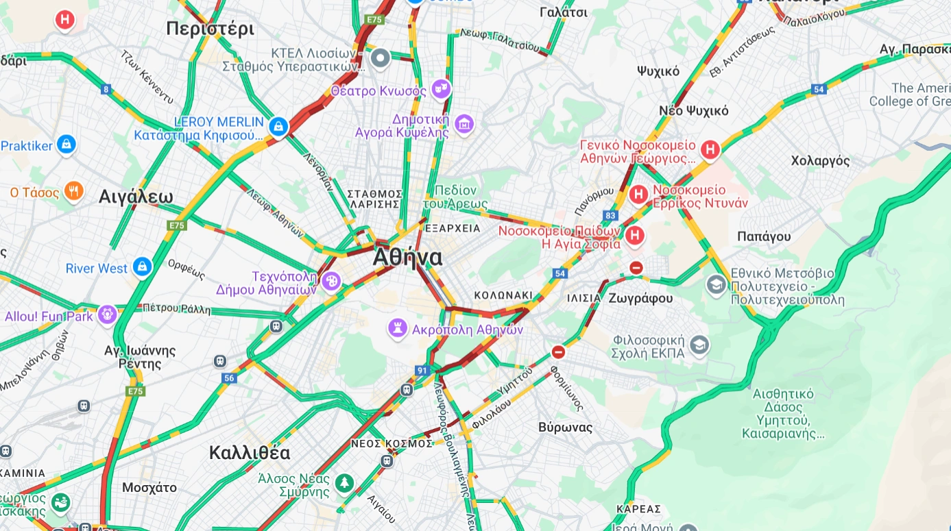 Συγκεκριμένα αυτή την ώρα σημειώνονται σημαντικές καθυστερήσεις στην κάθοδο του Κηφισού, από το ύψος της Μεταμόρφωσης μέχρι τη Λεωφόρο Αθηνών και στην άνοδο, από το ύψος της Λένορμαν μέχρι και τη Νέα Φιλαδέλφεια.