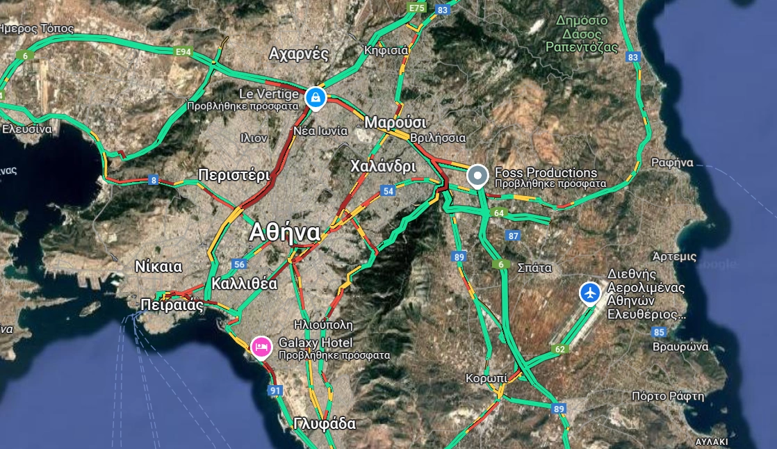 Παράλληλα, καθυστερήσεις παρατηρούνται στη Λεωφόρο Αθηνών, στο ύψος του Σκαραμαγκά, τους δρόμους γύρω από το λιμάνι του Πειραιά αλλά και την Παραλιακή.