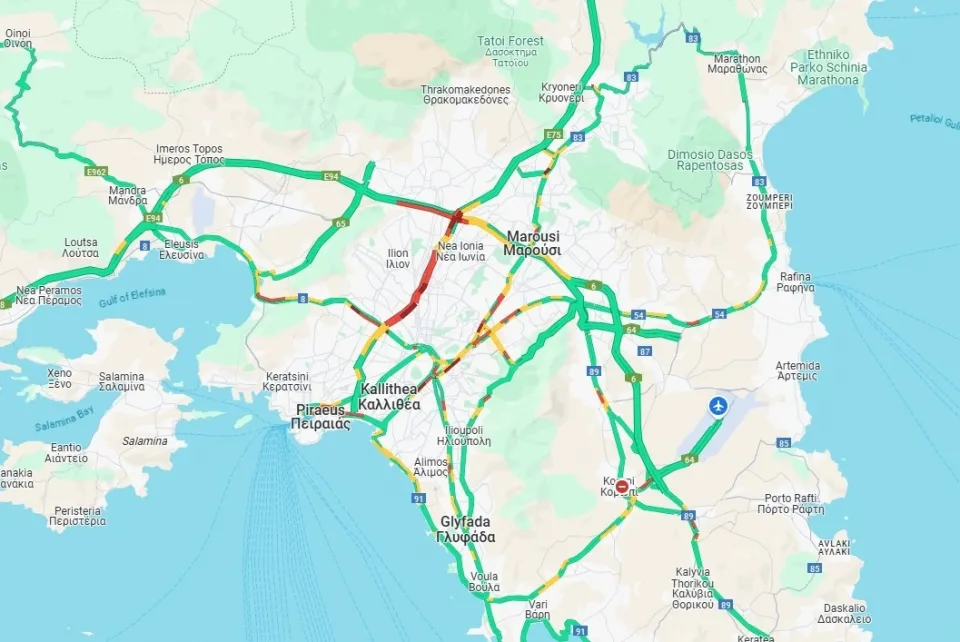 Μικρότερες καθυστερήσεις εντοπίζονται στη λεωφόρο Κηφισίας, στο ύψος του Ψυχικού, και στη Μεσογείων, κοντά στο Πεντάγωνο.