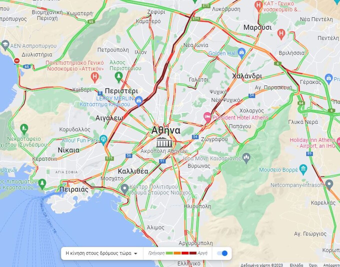 Δείτε χάρτη με την κίνηση λίγο πριν τις 9 το πρωί της Παρασκευής