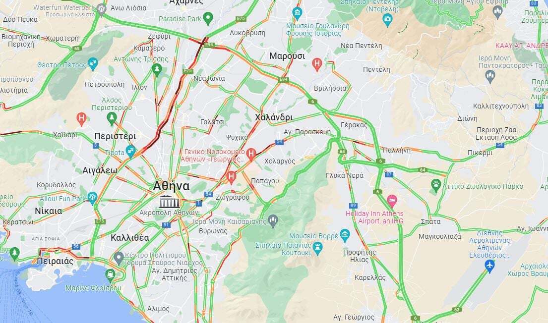 10′-15′ από τον κόμβο Μεταμόρφωσης μέχρι τον κόμβο Κηφισίας.