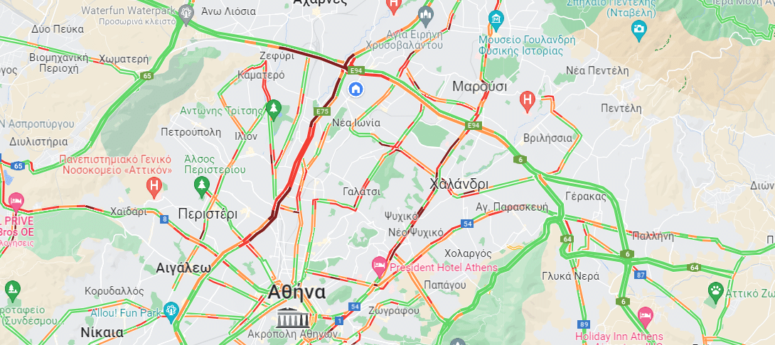 άνω των 30΄από κόμβο Φυλής έως κόμβο Κηφισίας,