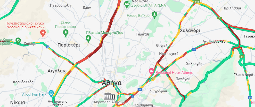 Παράλληλα, η ίδια εικόνα επικρατεί και στην Αλεξάνδρας, στην Μεσογείων, στην Κατεχάκη (στο ρεύμα από Ηλιούπολη), και στα δύο ρεύματα της Κηφισιάς, και στα δύο ρεύματα της Βασ. Σοφίας, στην Βασ. Κωνσταντίνου, στην Καλλιρρόης, στην άνοδο της Λ. Συγγρού, και στην Βασ. Αμαλίας.